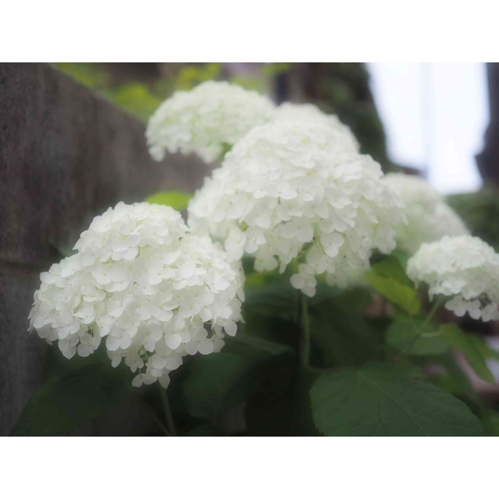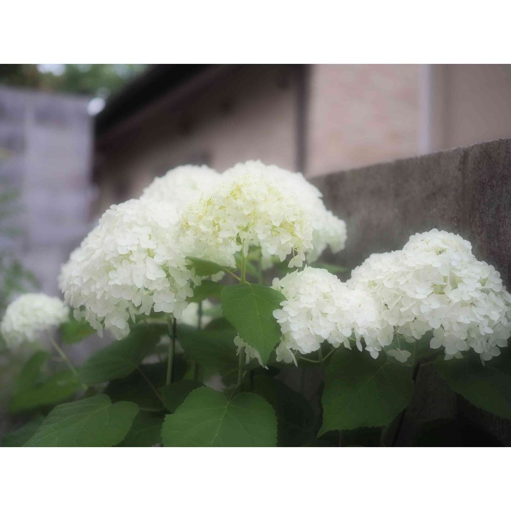 紫陽花と背景を見ていると、