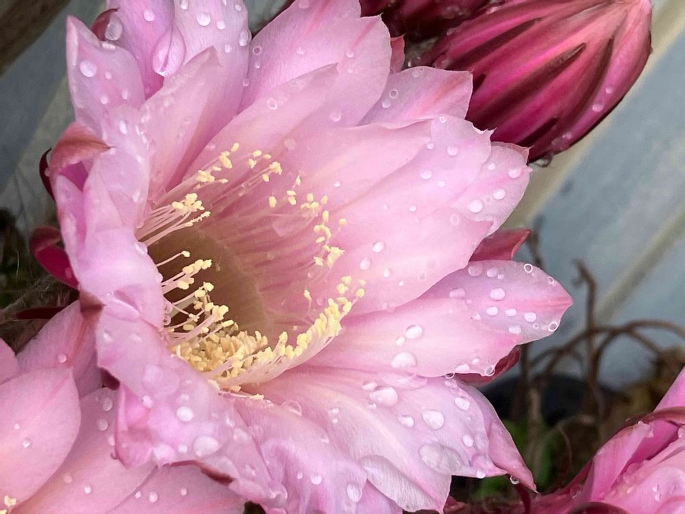 こんな大きな花が咲くようなサボテンではないと思っていたので、驚いてます。