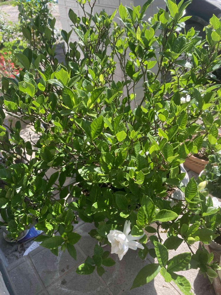 数年前、母の日にもらった八重のクチナシがきれいに咲きました♪
