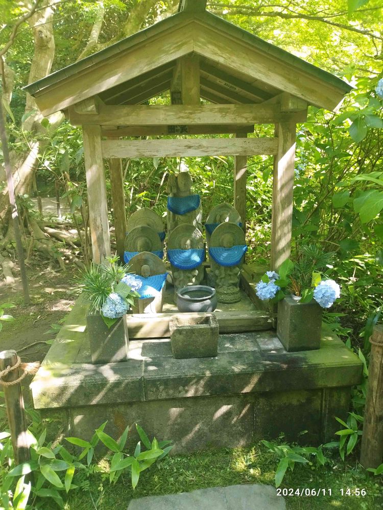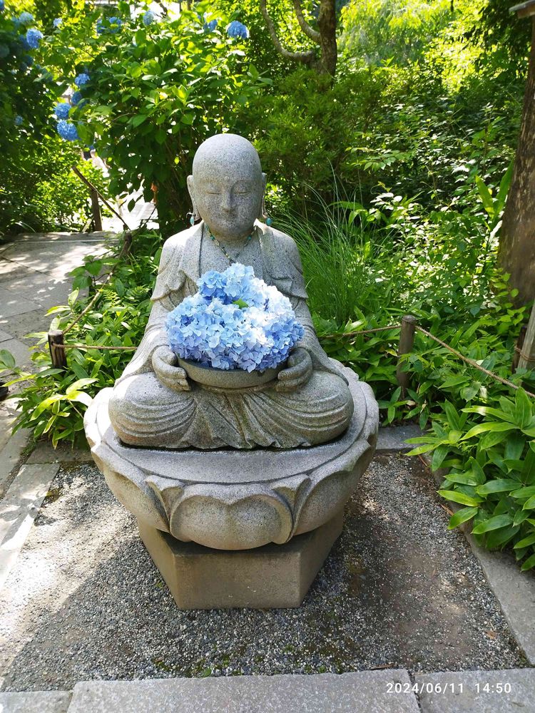 優しいお顔のお地蔵さまと青い紫陽花💙癒されますね