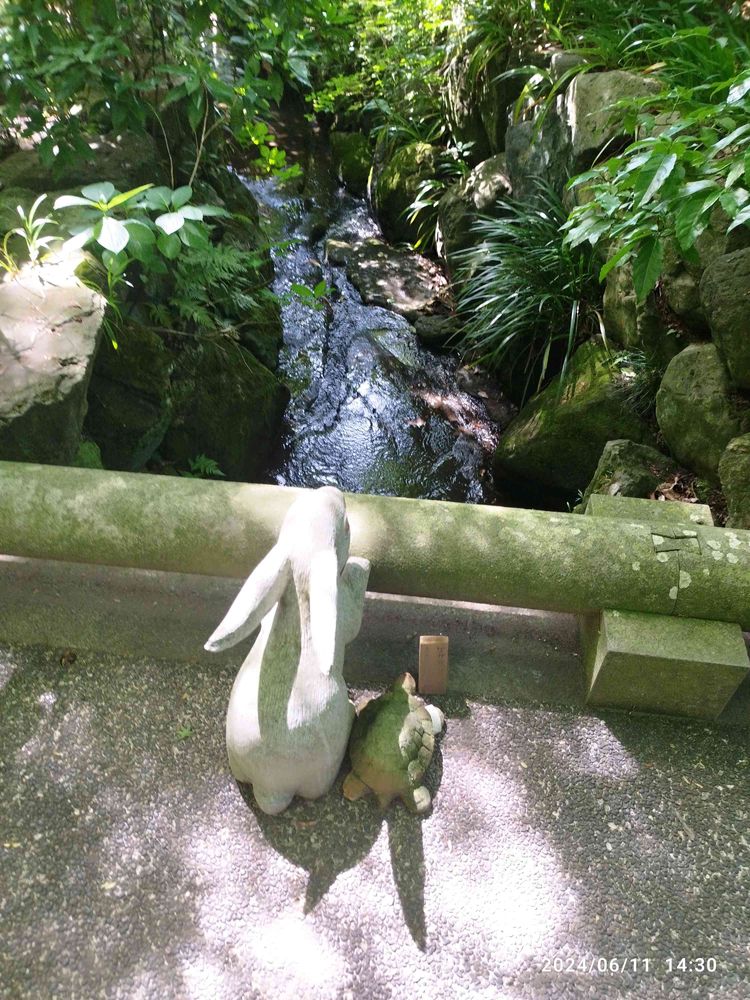⑤草木が爽やかな小川を仲良く見ているうさちゃんと亀さんです🐰🐢💞🌲🌿