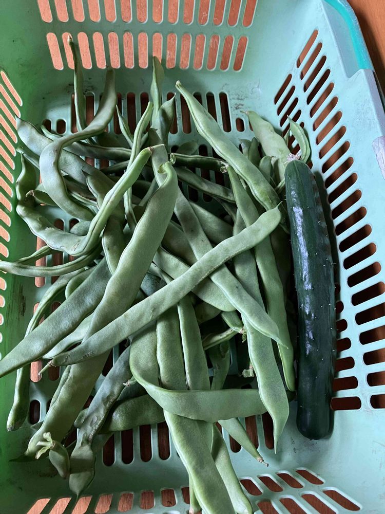 1ベニチガヤでいいのかな間違えていたらごめんなさい。2 モロッコインゲン豊作です。
