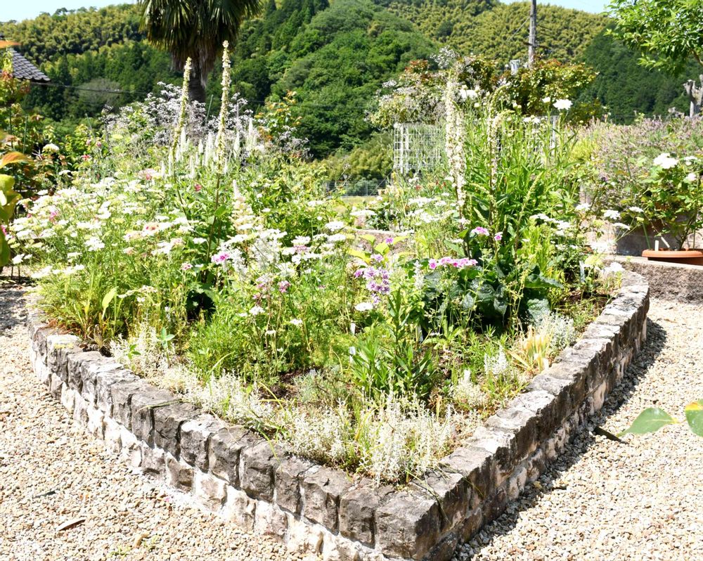 ハート花壇には主に白の花を植えています🤍 バーバスカムにはピンク、黄色、白など様々な色の種類がありますが、ここには白のウエディングキャンドルズを植えました😊