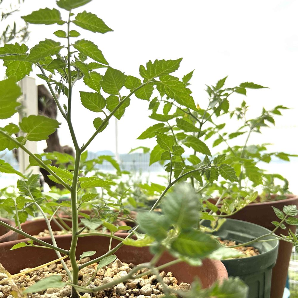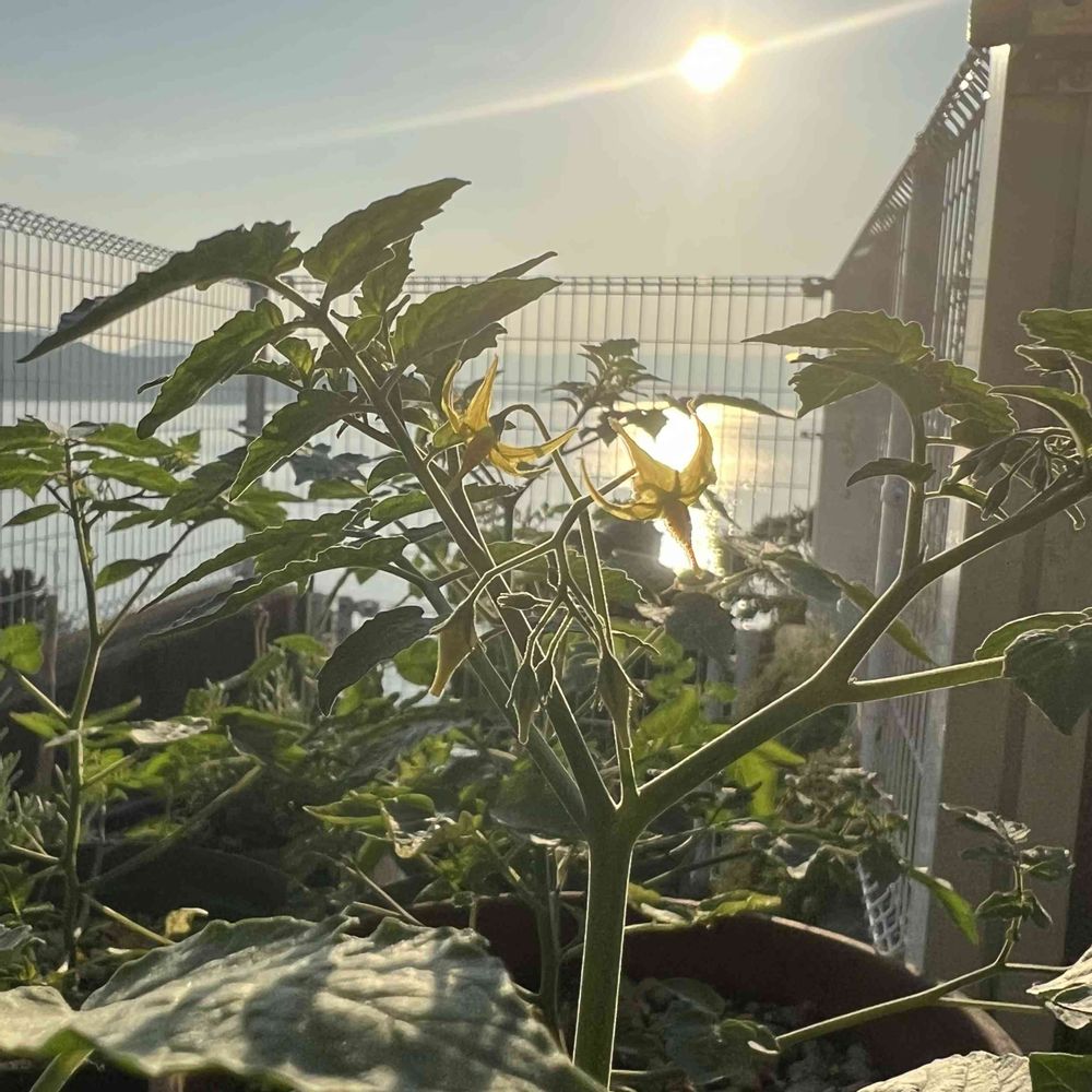 マイクロトマトの花が次々咲き始めています。1センチ程でしょうか。地植えせず素焼き鉢とスリット鉢に植え付けました。