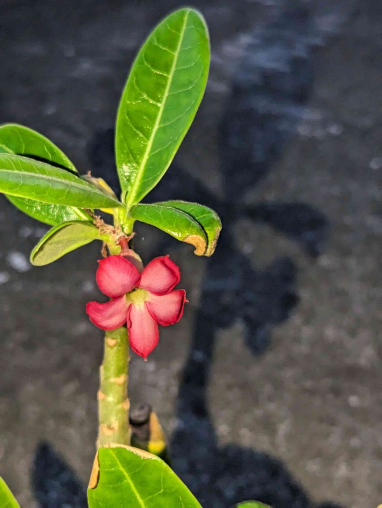 昨日までつぼみだった砂漠のバラ(アデニウム)、咲いてました。