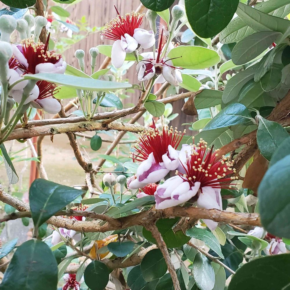 ②フェイジョア、蕾があるなぁ~と思っていたら、もう咲いてたぁ~😅めっちゃ沢山💕