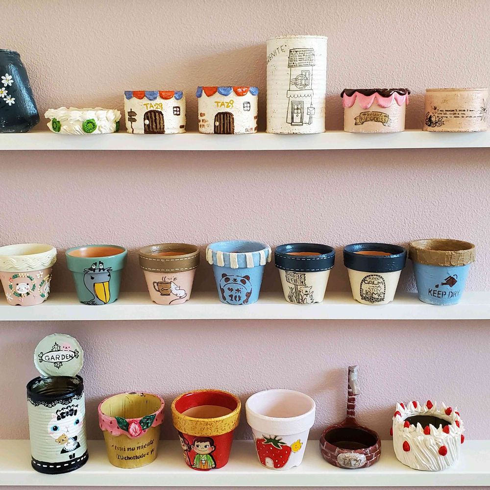 リメ缶リメ鉢達を並べて眺めるのが癒しになるね〜🤭🎶💗