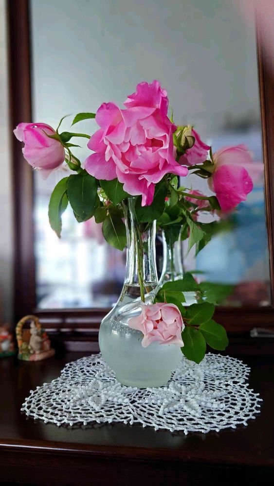 しまい込んでた花瓶を出してきて、今まで入れてた空き瓶🤣から昇格しました〜