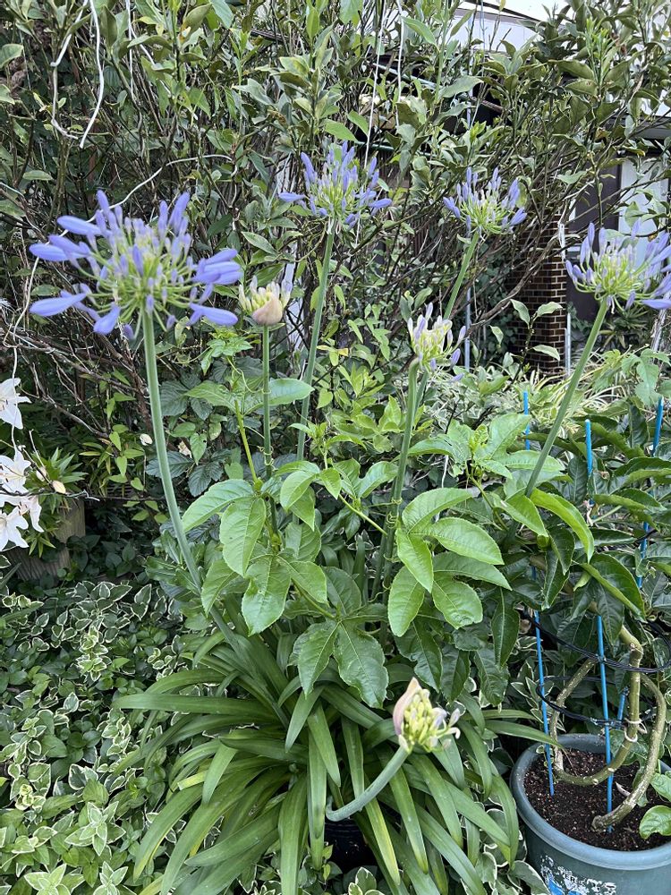 10鉢ぐらいあるアガパンサスが今年も咲き始まりました。