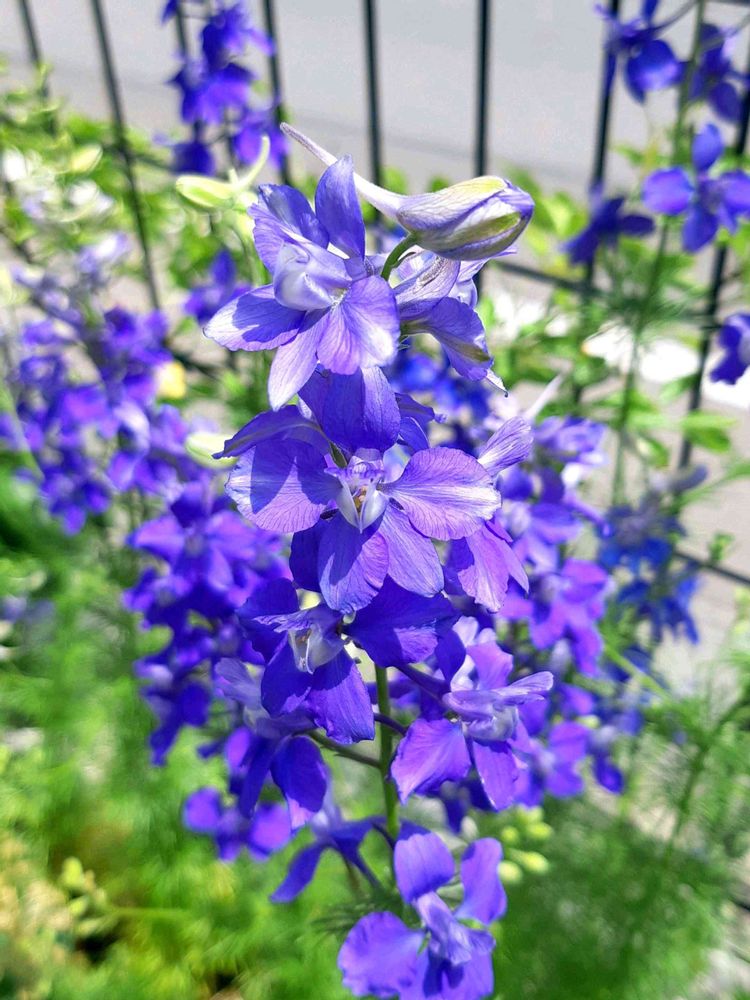連日の真夏日にぐったりですが、チドリソウは元気に開花中💠🌿