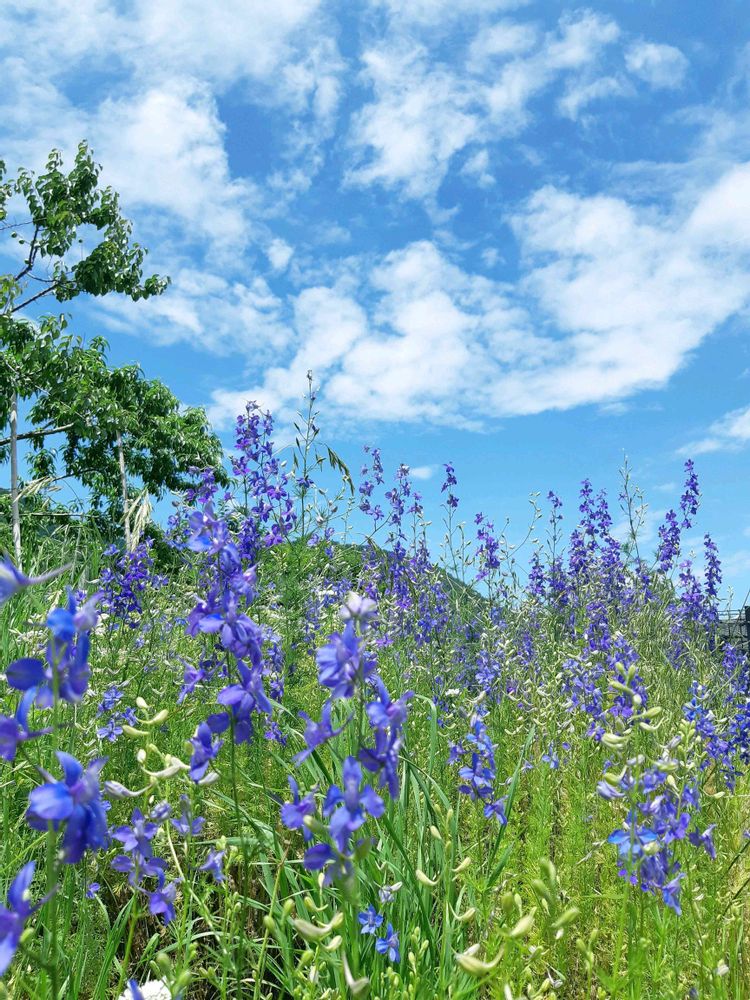 毎年雑草生い茂る畑の斜面も、チドリソウのおかげで雑草が少なくなった気分です💠