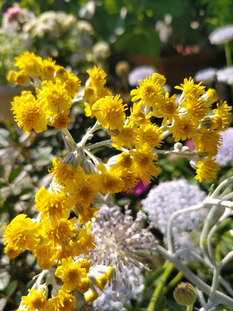 寄植えのカラーリーフで使っていたシロタエギクにお花が咲きました🟡🟡🟡