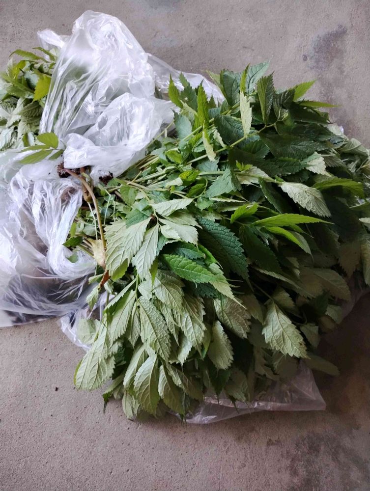 親戚の家に寄って、葉っぱを取って、湯通しまでやって、気前よく全部上げてきました。💬