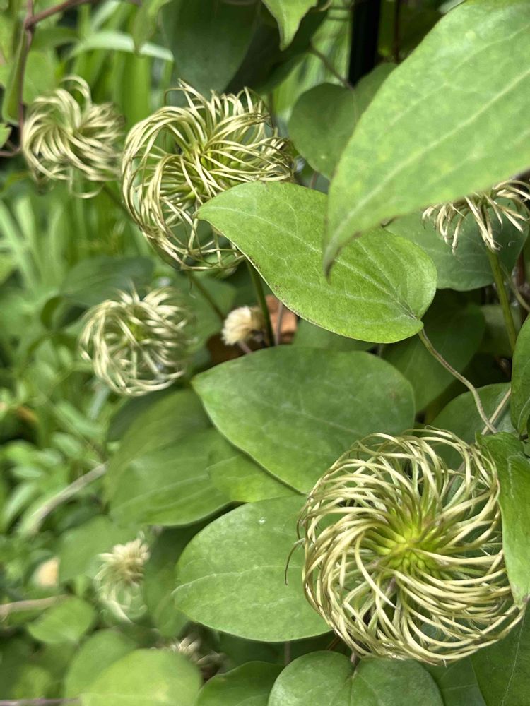 ごく一般的なクレマチスなんですが、何故か花後はツヤツヤクルクルなんですよね✨🌀
