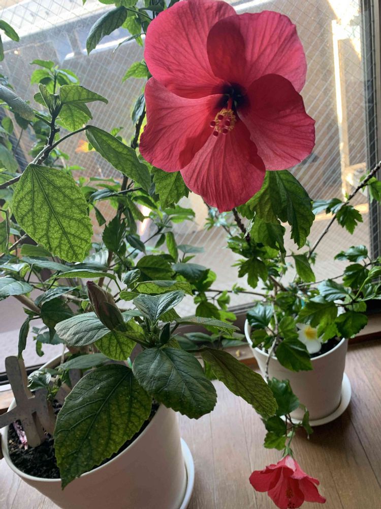 #ハイビスカス#サマーブリーズ#開花#リビング#窓際#ねこ