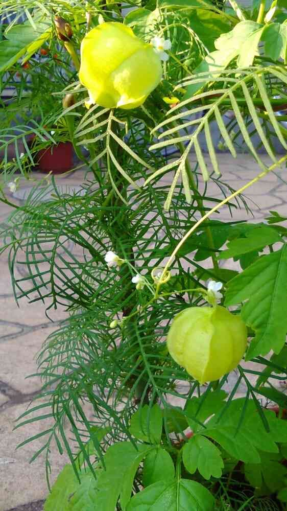 るこう草と一緒に植えておいた風船かずら、可愛い実をつけました