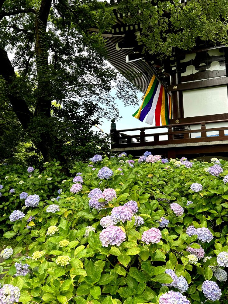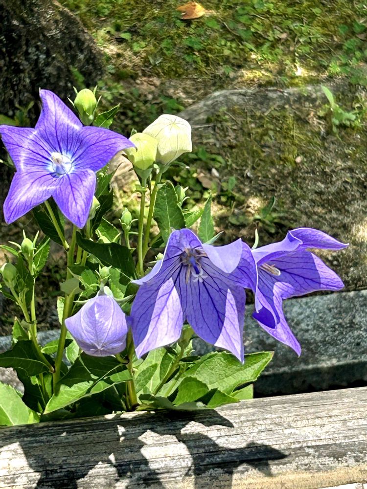 キキョウが御紋のお寺で参道にキキョウが植っていて、素敵なお庭にはひとえのクチナシが沢山植ってました🌿💜🌿🤍🌿