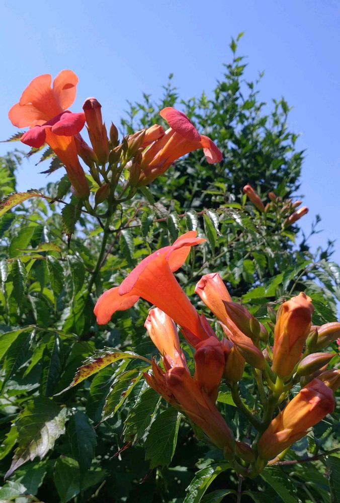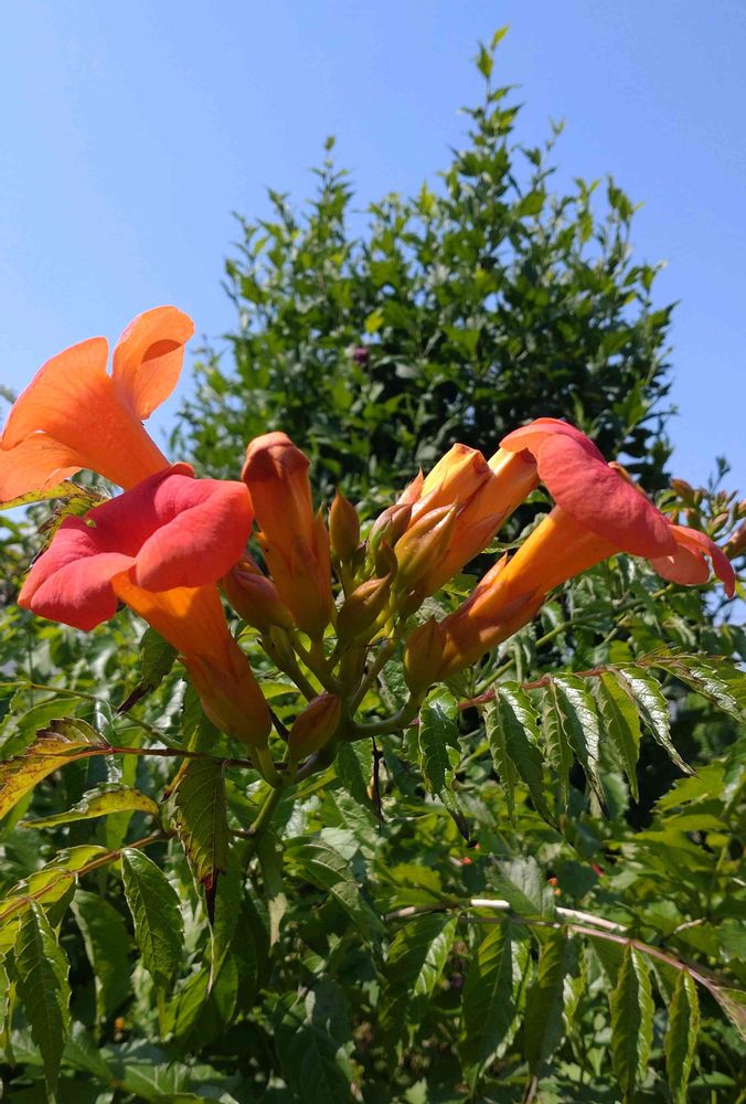 青空が似合って 元気をくれる ビタミンカラー の ノウゼンカズラさんが咲き始めました(*^^*)💛