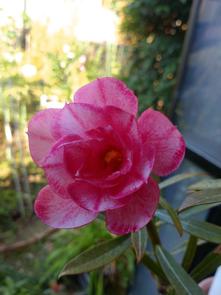 直射日光に当てていたら、葉先が傷んてきたから、サンルームの棚へ。
