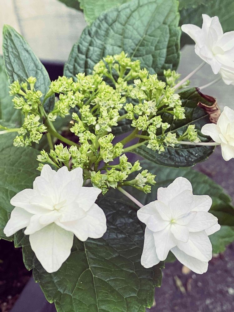 葉挿しっ子からの初開花🤗葉挿しの時の花はもう少し水色だったんだけど、ここから色変するのかしら🤔