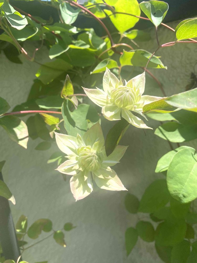 淡いグリーンがかった花色がオシャレなクレマチスさん✨