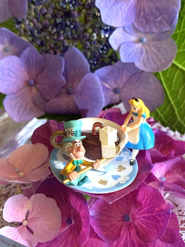 今日は35度の真夏日☀️真夏の暑さ🥵アリスのティーパーティーは紫陽花さんをお部屋に招待して、クーラー効いた室内で開催します💕今日のお花、紫陽花さん💕