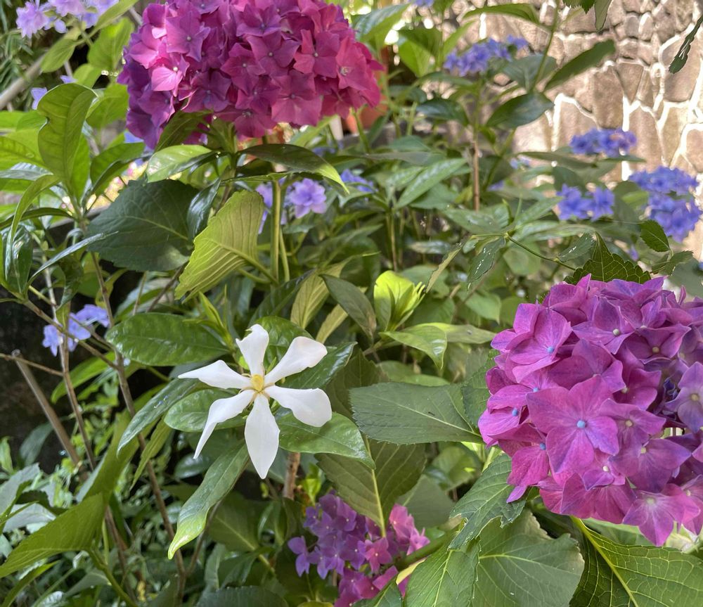 今庭は紫陽花がいっぱいで、お部屋のあちこちに飾っています💖