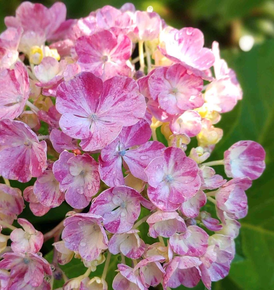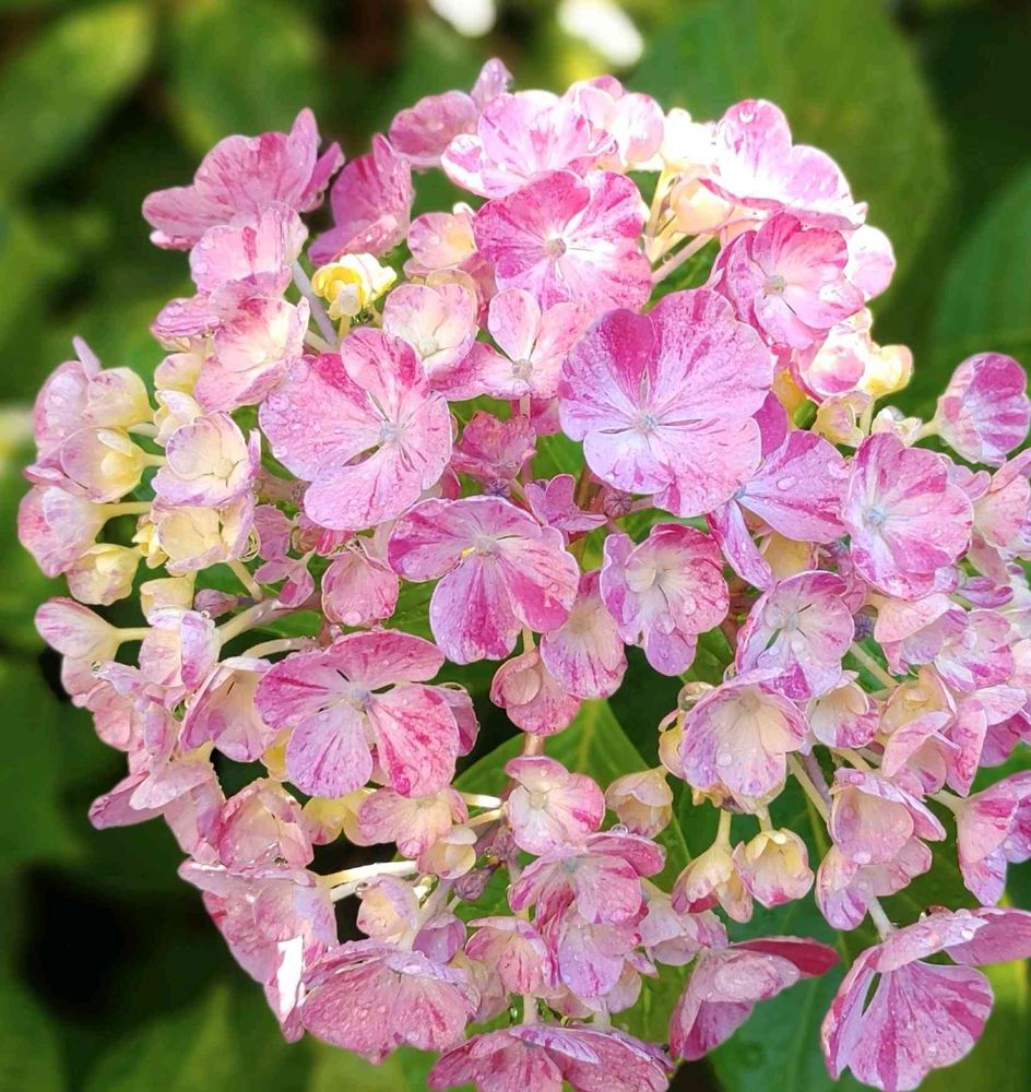 うちにこの子と同じように模様が入ったピンクのアジサイがあります。