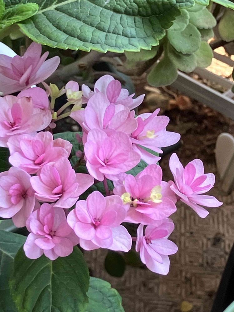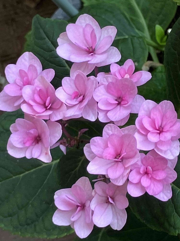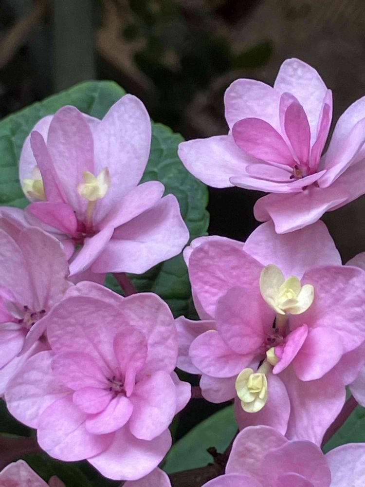 ピンクの紫陽花の花の中に小さな白い花が可愛いね🤭🎶💕