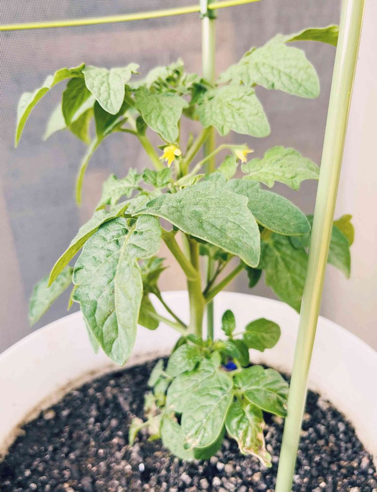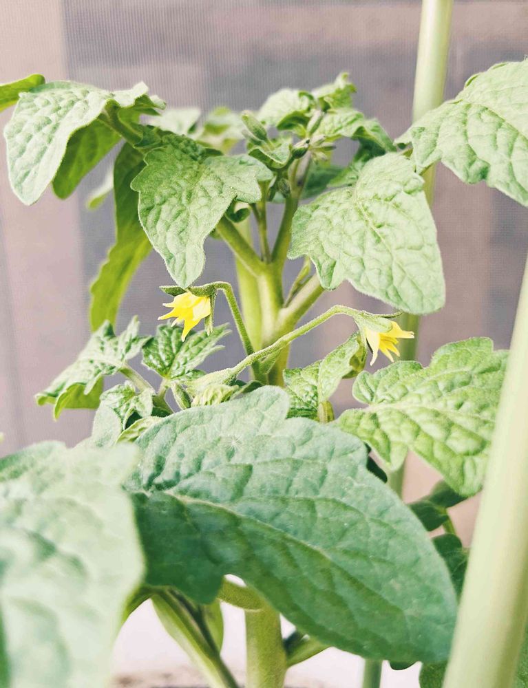 向日葵、マリーゴールド、ミニ姫(トマト)。ミニ姫は今朝花がついてました。