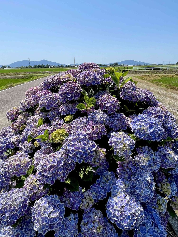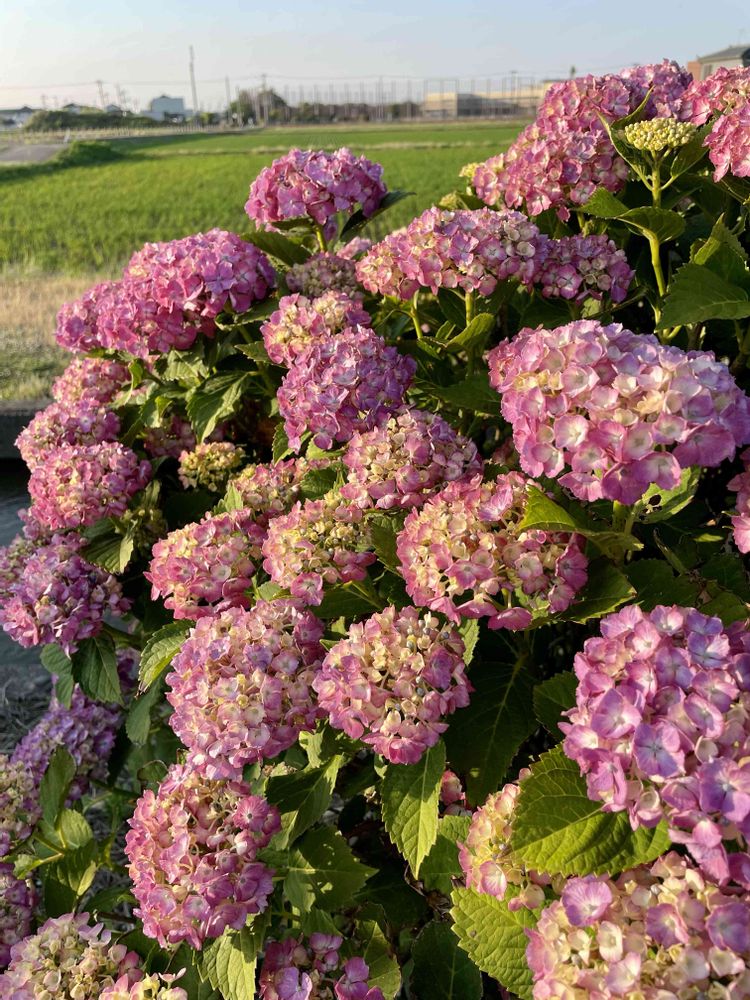 ここの紫陽花は周りが田んぼなので、風当たりも、日当たりも強く、すぐ焼けたようになり、綺麗な時期が少なくて残念です🥲