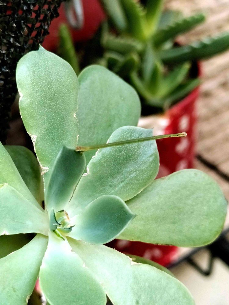 3枚目は…多肉にくっついて僕は多肉ですよ〜ってとぼけてる尺取り虫🐛