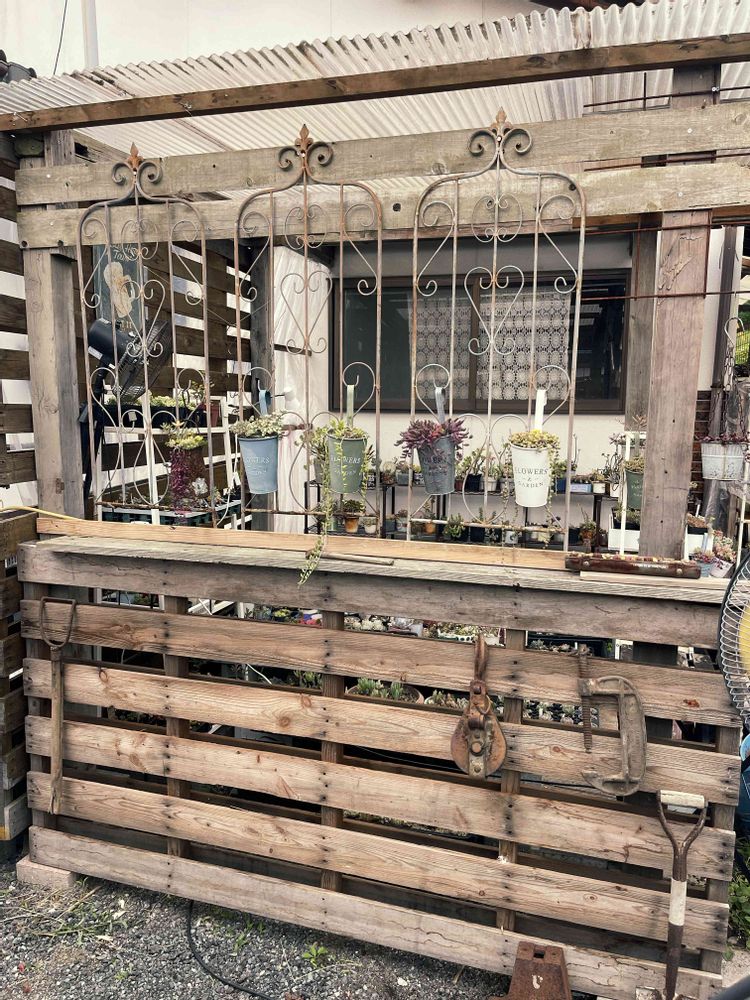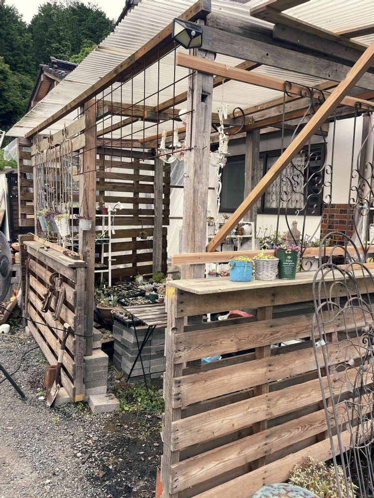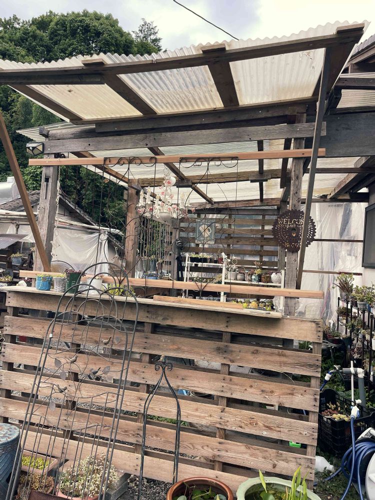3年間、ただ屋根だけだった多肉の仮置き場を木製パレットを使って多肉小屋風にリメイクした感じ✨