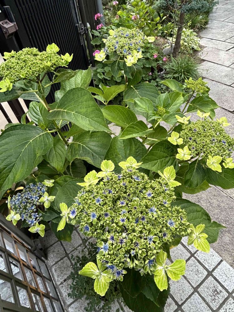 植木鉢と地植えがありますが 地植えは 鉢植えと比べると小ぶりで 中々 装飾花が綺麗に出ないのですが 鉢植えの大島緑花は 花も大きく 装飾花も綺麗です💓