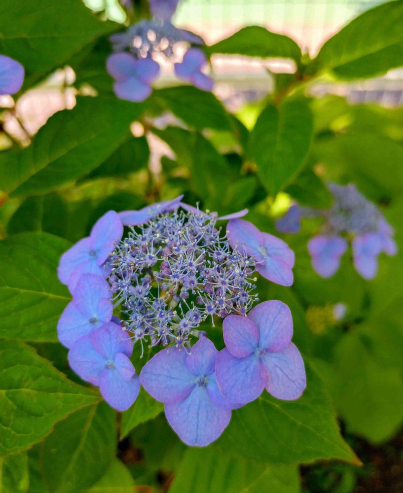 何種類か咲いている紫陽花の中で、この子はあまり見かけたことのないちょっと不思議なブルーのヤマアジサイです💙