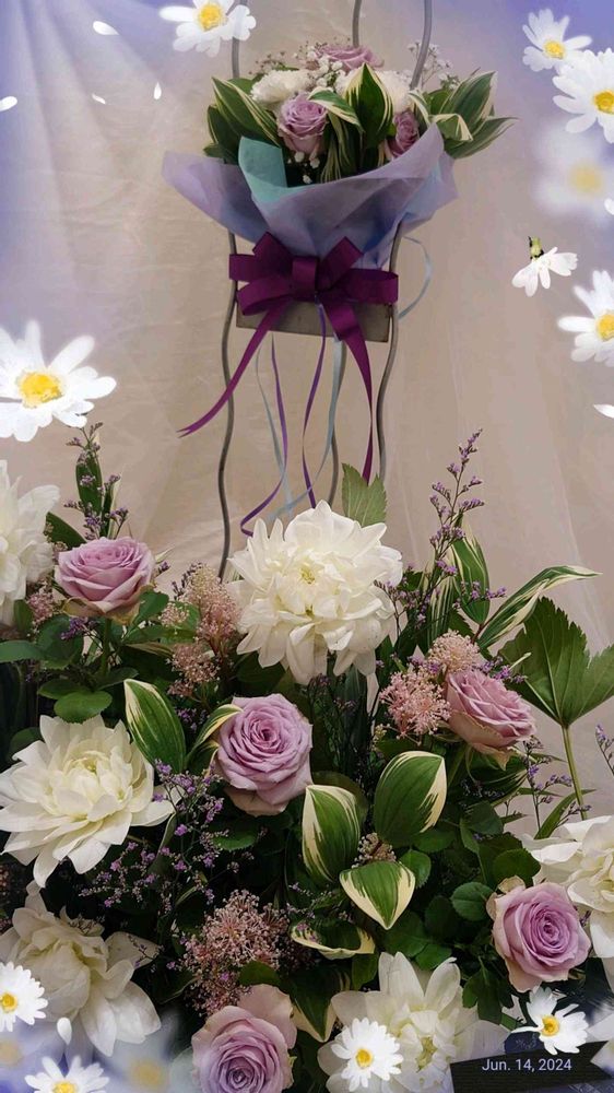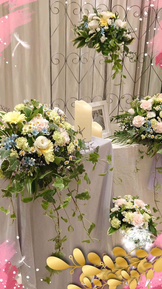 フューネラルセレモニーの部分アレンジの展示コーナー