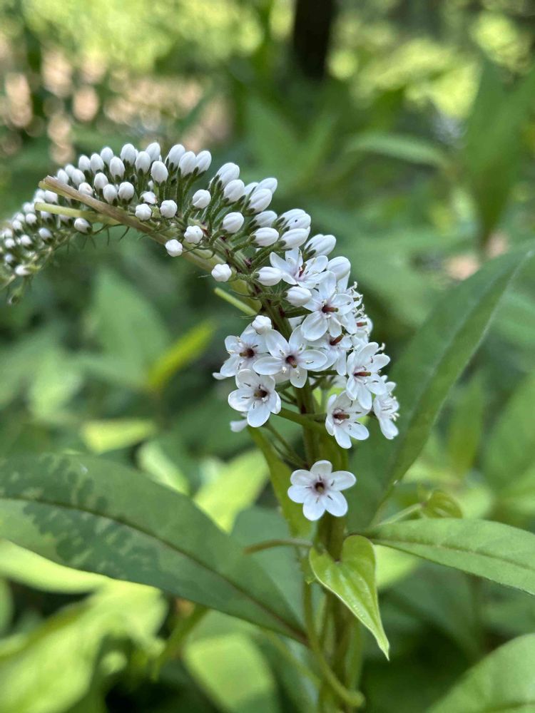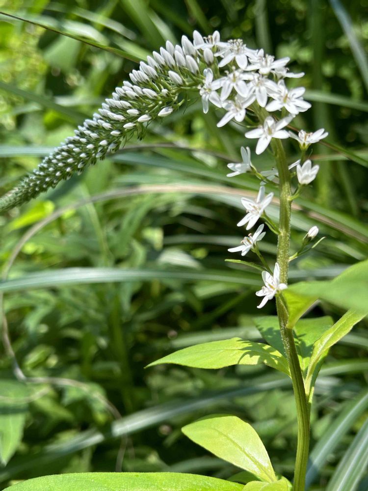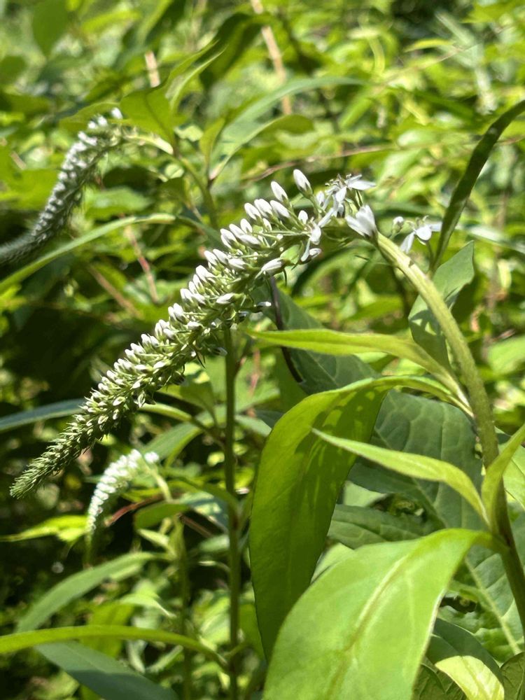 日当たりの良い丘陵地に生える多年草、花穂が虎の尾の様とこの名が、一方に偏って白い花を多数つける。
