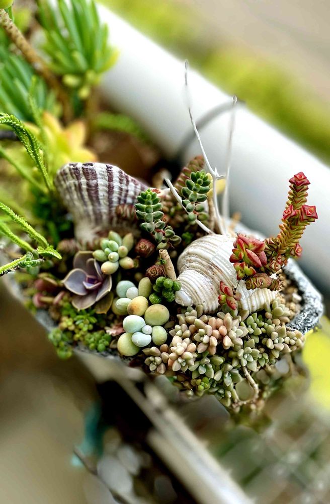 海物語🪼数少ないファン層の1人しのんベイベー♡自分で作ってなんだが、もっと海洋生物的な多肉を入れたい😁今年は多肉の元気を回復させるのが最優先だったからね〜来年はもっと元気な子が増えて寄せ植え沢山できるかな〜