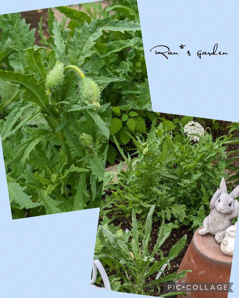 ポピーの蕾がニョキニョキ、やっぱり強い子が真っ先に出てくるのかな🙄❓
