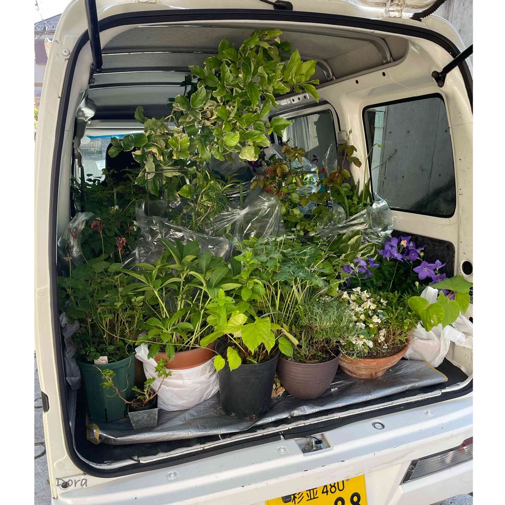 まるで園芸店のワゴン車のよう。これでも、載りきらなくて2往復〜🚚🚚
