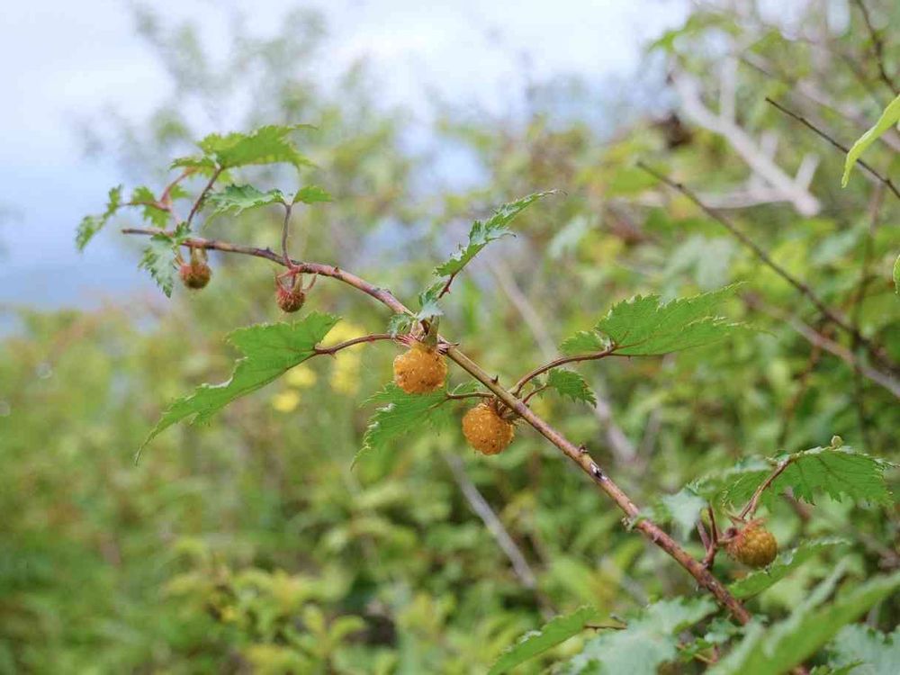あらゆるベリーの中でいちばん美味しい説もあって クマのご馳走になるそうです。完熟まではもう少しでしょうか、優しいミカン色でした。