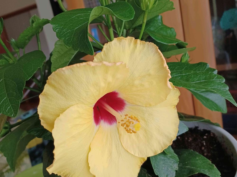 2色咲きのハイビスカス🌕️黄色が咲いてピンク💗も咲いてくれましたよ✨