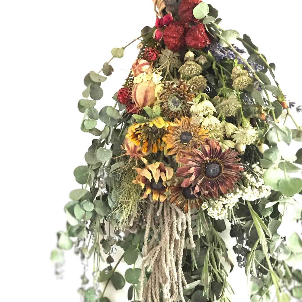 大切な方へのギフトやご自宅のインテリアとしてもぴったりな、ドライフラワーのスワッグを制作しました☆ Lsize 約55センチ×約25センチ ※価格などご質問はメール:fuwari@fuwariwedding.comまで♪