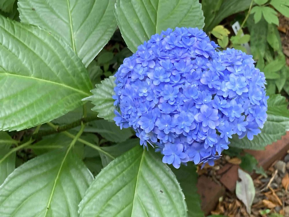 挿し木苗のアジサイ💙 お花も葉っぱ🌿も綺麗だね😍