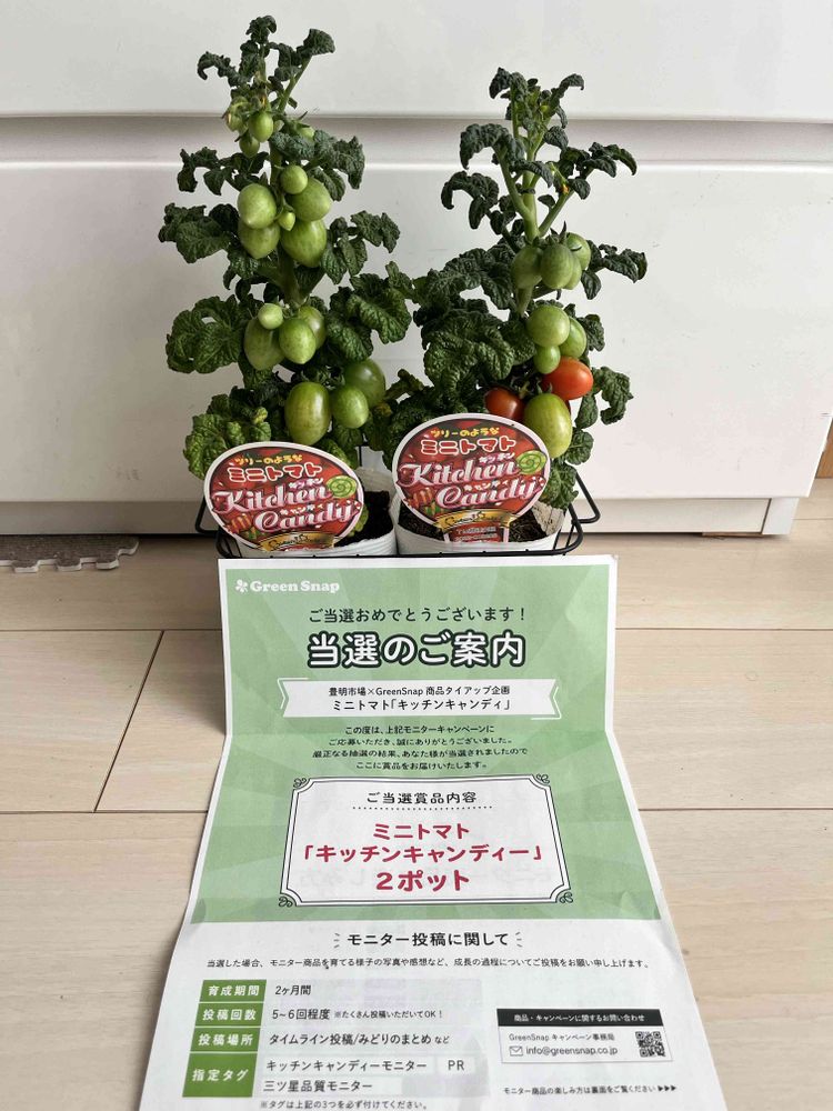 今日、モニターキャンペーンに応募した✨ミニトマト「キッチンキャンディー」2ポットが届きました😄🎶
