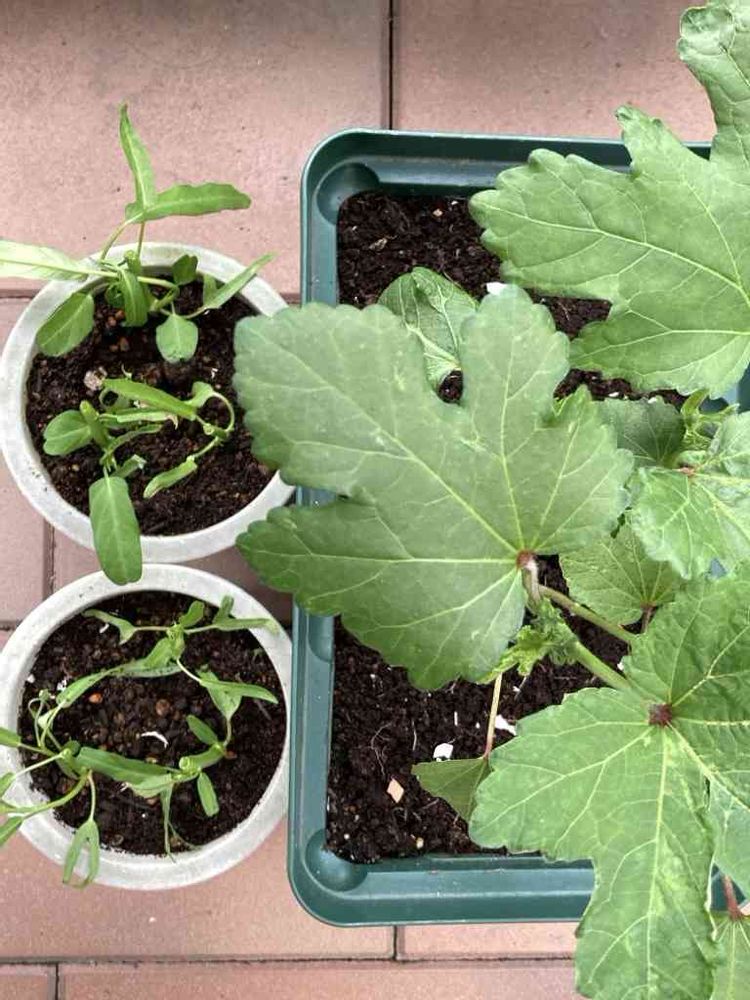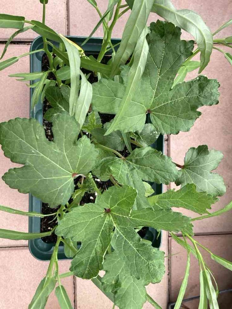 小苗の時に寂しくてオクラと空心菜を一緒に植えてみたけど、最近急に大きくなって見るからに窮屈。