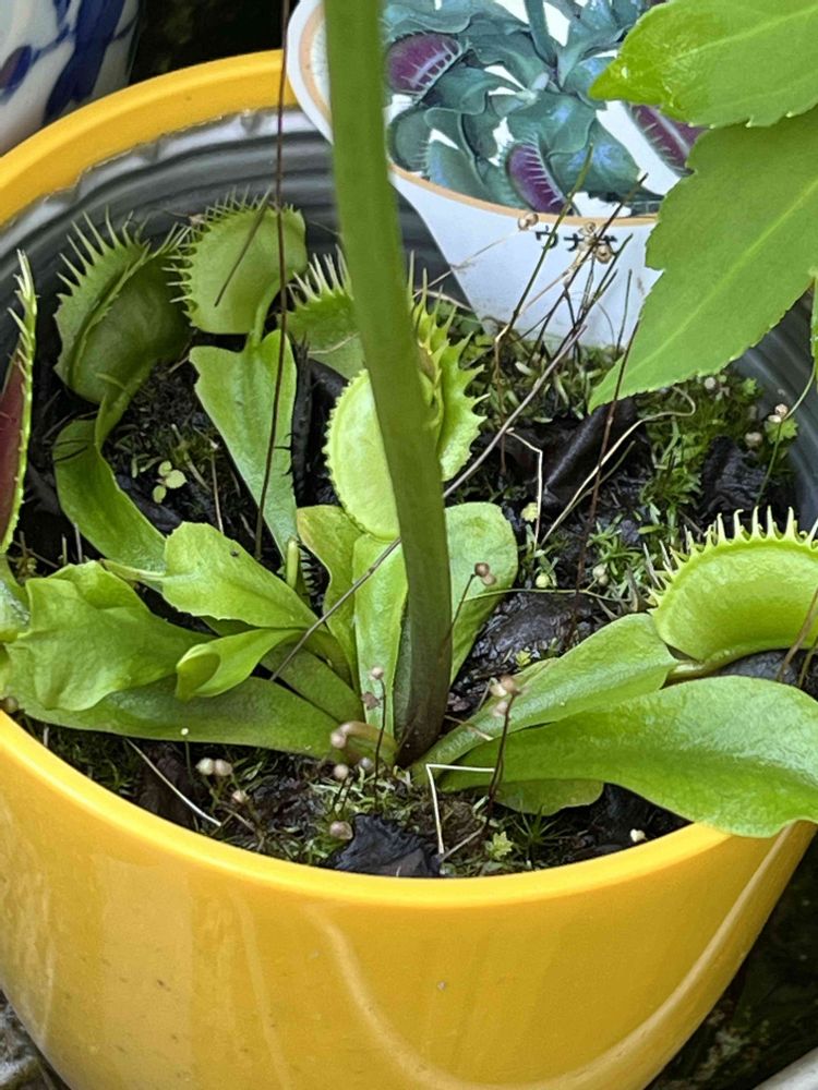 我が家に来て以来、一度も虫を食べてないハエトリグサに白いお花が咲いた♡