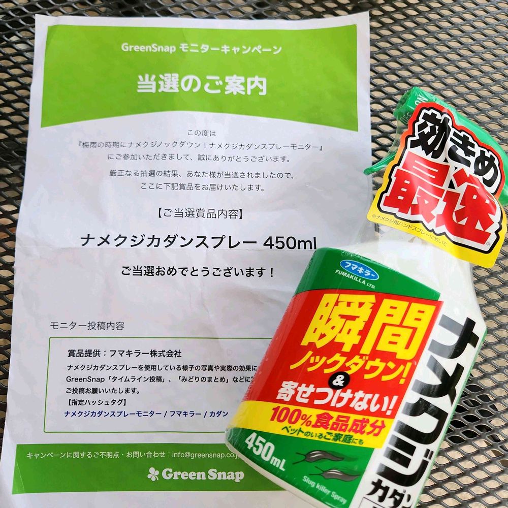 フマキラーさんのナメクジカダンスプレー当選しました‼😊