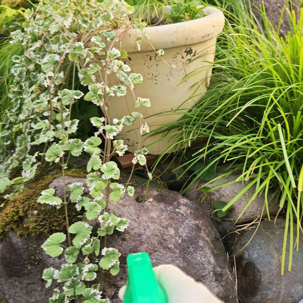 ③昨日ミニナメクジを発見した現場へ急行💨🏃♀️注意通り、植物にかからないように石にだけ小スプレー噴射✨👊🪱