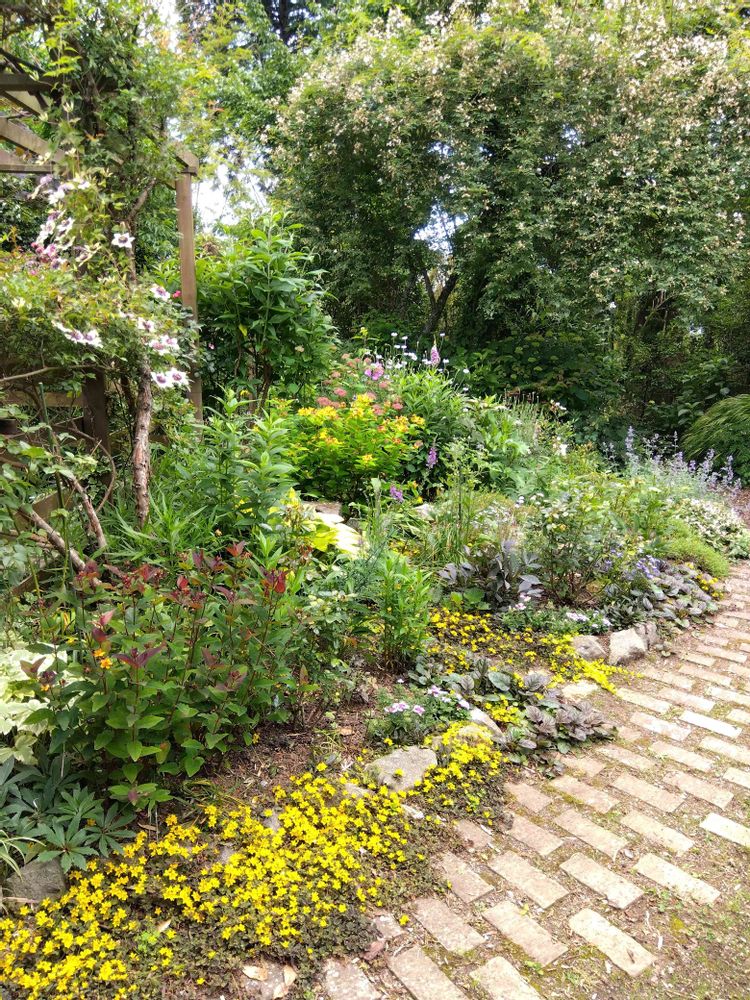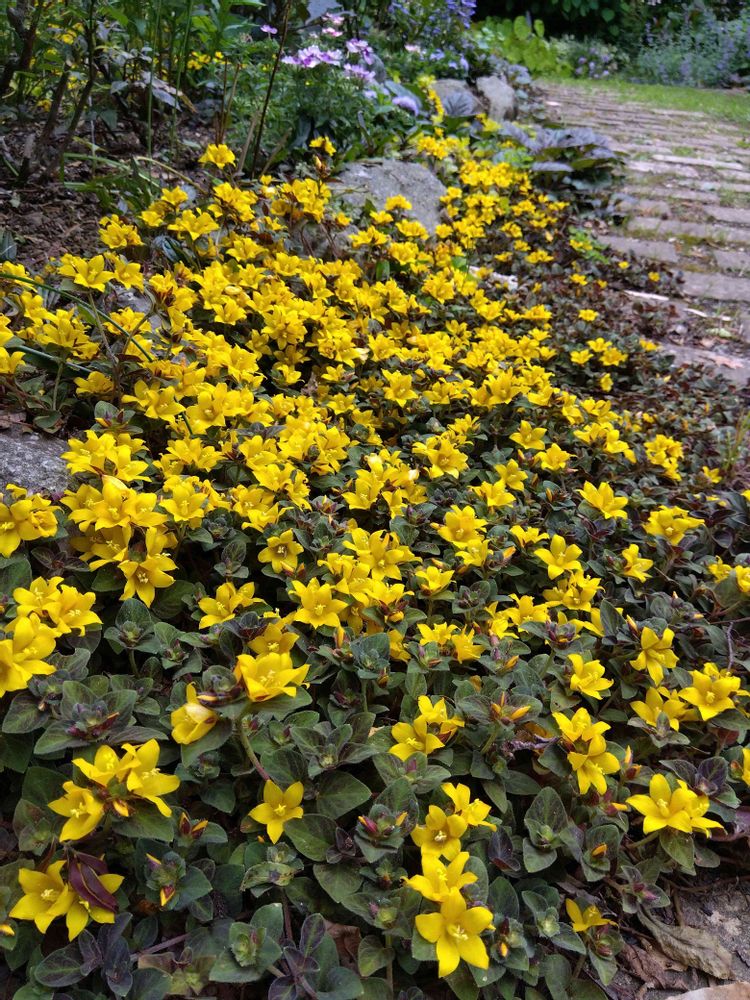 花壇は今リシマキア ミッドナイトサンの黄色い花のラインで縁取られています🌼🌼🌼